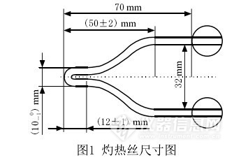 灼熱絲是用標稱直徑 4mm的鎳 / 鉻 (80/20) 絲制成,采用簡單的電加熱,且不應有用于保持溫度的反饋裝置或反饋回路,灼熱絲尺寸如圖1所示。
